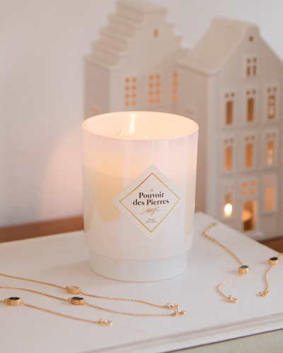 Lorsque la pochette de protection apparaît, éteignez la bougie. Découvrez votre bijou caché et portez-le dès maintenant pour profiter de sa beauté. Pour une expérience idéale, éteignez la bougie lorsque la cire atteint une profondeur de 1 cm afin de préserver le support et le contenant.
