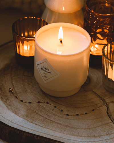 Pourquoi choisir entre une bougie et un bijou quand on peut avoir les deux ? Au fur et à mesure de la combustion, les notes florales et poudrées de cette bougie dévoilent progressivement un collier ou un bracelet fin et délicat, à porter près du cœur. C'est la petite touche qui fait toute la différence.